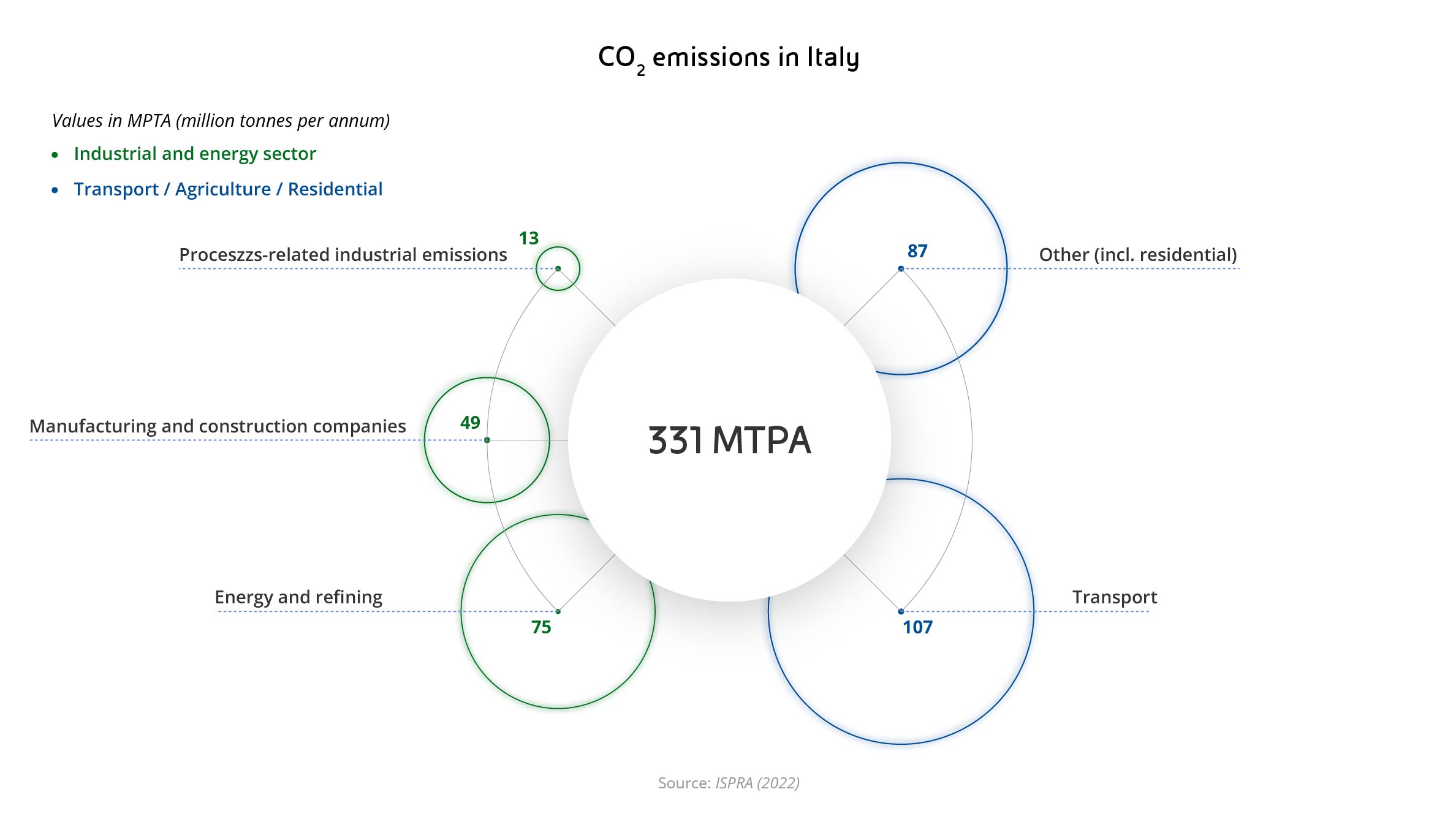 Total CO2 emitted in Italy in 2021
