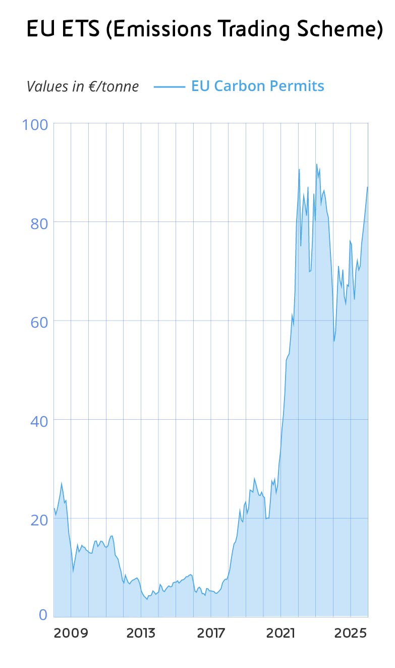 cost per tonne of CO2 in the ETS (Emission Trading System) framework in 2025
