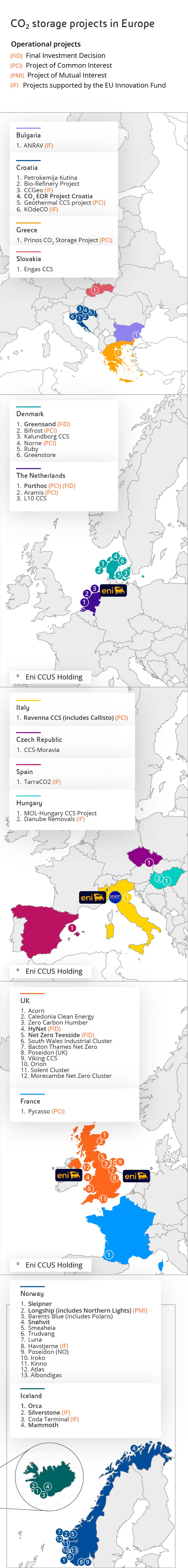 Countries such as Norway, the Netherlands, the UK, Denmark and Germany are leading the way in supporting domestic CCS initiatives. In December 2020, Norway gave the green light to funding for its Longship initiative, accounting for around two-thirds of the $2.7 billion earmarked for investment and operational expenditure over 10 years. In the UK, the importance of CCS is underscored in the government's 10-point plan for a “Green Industrial Revolution”, with four major projects receiving significant government support. One of them is Hynet in the North West of England, where Eni is participating as operator in the transport and storage of CO2. The project, already at an advanced stage, involves injecting CO2 captured from onshore industrial operations into Eni's depleted offshore fields in Liverpool Bay. The goal is to reduce CO2 emissions from this key industrial district and enhance its competitiveness in the market. The project will start with a capture capacity of 4.5 Mtpa of CO2, with the possibility of expanding it up to 10 Mtpa beyond 2030. In addition, the integrated project includes plans for a major hydrogen production facility.
